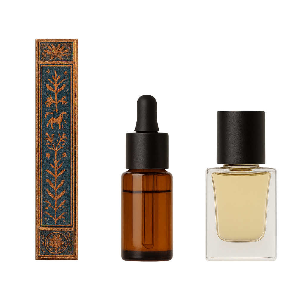Směs vonných esencí pro parfém a olej do aromalampy inspirovaná starověkými recepturami.